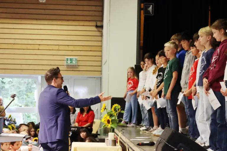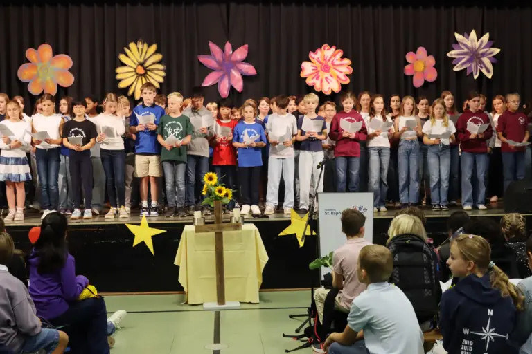 Am Di., 16.9.2025 fand in der Aula die Einschulung der neuen Schülerinnen und Schüler am St. Raphael statt. Eine abwechslungsreiche Stunde mit vielen schönen Momenten und aufmunternden Worten für 178 Kinder.