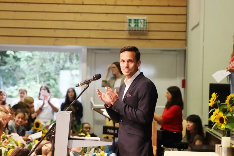 Motivierende Worte fand auch Schulleiter Steffen Englert. Der heutige Tag sei ein spannender Tag für die Schule, die neuen Schülerinnen und Schüler zu begrüßen. Sie starten ein neues Kapitel in ihrem Leben, was von gegenseitigem Respekt, Demut, Freude, Trauer, Streit und Feiern geprägt sein wird. „Du bist gut, weil du du bist.“