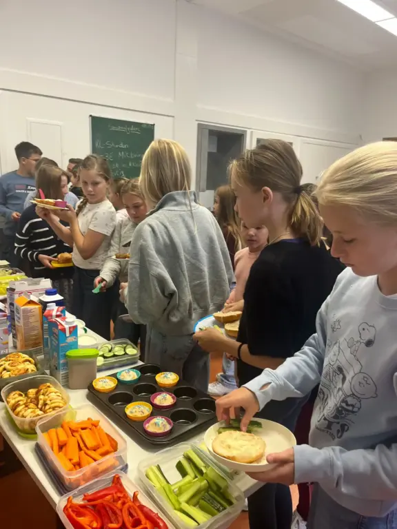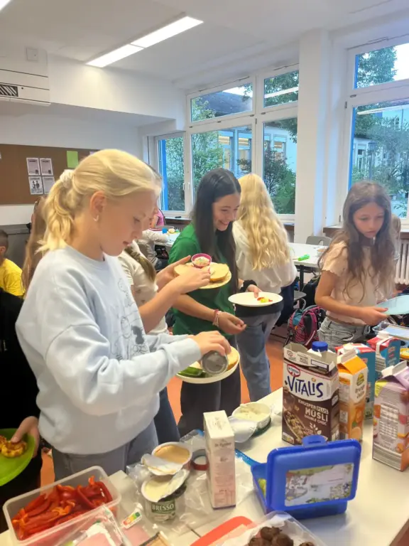 Eine wichtige Rolle spielten dabei die Mentorinnen und Mentoren aus den 9. Klassen, die nicht die Schulrallye entwarfen und durchführten, sondern auch direkt Ansprechpartner waren, v.a. beim Frühstück. Reichhaltige Büffets, lockere Stimmungen sowie lustige und interessante Gespräche in einer Wohlfühlatmosphäre.