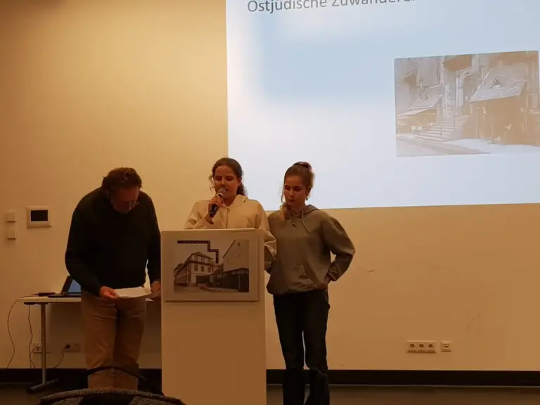 Schon vor dem 9. November 1938 haben polnische Juden großes Leid erfahren müssen. Es fanden Ende Oktober Deportationen statt. Darüber haben wir bei der Gedenkfeier in der Altstadt gesprochen. Der „Arbeitskreis Christlicher Kirchen“ und Norbert Giovannini vom Geschichtsverein der Stadt Heidelberg haben den Abend organisiert und hatten meine Schwester Sara Alonso Bernhardt (KS1) und mich, Laia Marie Alonso Bernhardt (6d), gefragt, ob wir ihn mitgestalten wollen. Und so haben wir uns an einer Lesung über verschiedene jüdisch-polnische Familien aus der Altstadt beteiligt.