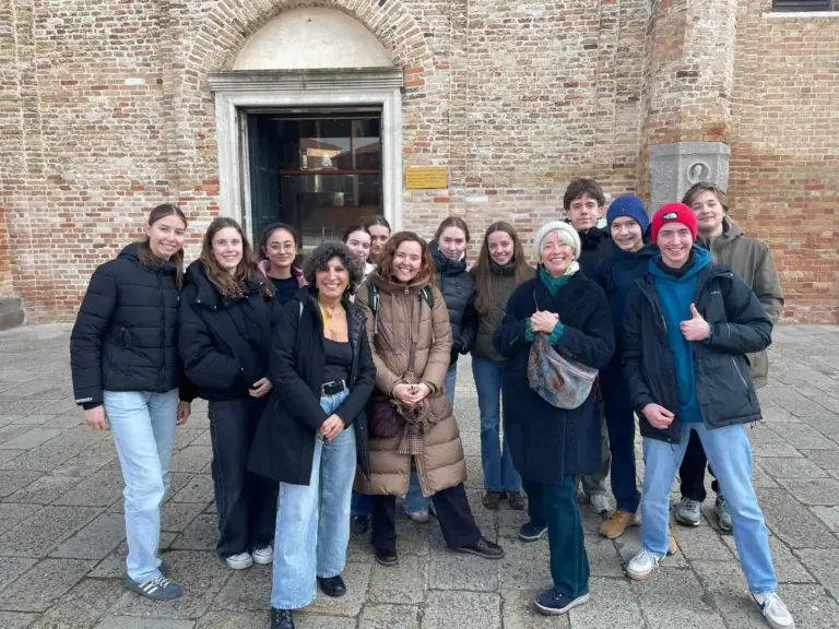 Am Montag und Dienstag verbrachten wir deutschen Schüler den Tag in Venedig. Montags hatten wir eine Führung im Dogenpalast am Markusplatz sowie die Geheimgänge. Um vom Bahnhof dorthin zu gelangen, fuhren wir mit den Vaporetti über den Canale Grande. Während der Bootsfahrt konnten wir schon tolle Sehenswürdigkeiten, wie die Rialtobrücke, sehen und einen ersten Eindruck von der schönen Stadt erhalten. Besonders beeindruckend war der Dogenpalast mit seinen Gemälden und Verzierungen. Wir erfuhren sehr viel Neues. Am Nachmittag blieb genug Zeit die Stadt auf eigene Faust anzusehen. Zurück ging es an diesem Tag um 18.30 Uhr ab Bahnhof Venezia. Dienstags ging es wegen des Wetters gleich wieder nach Venedig. Hier ging es auf die Inseln. Wir fuhren wieder mit den Vaporetti am Friedhof vorbei nach Murano. Diese Insel ist für die Glasbläserei bekannt. Wir durften einem Glasbläser zusehen, wie er ein gläsernes Pferd herstellte. Mit einem Vaporetto ging es zur nächsten Insel, der Insel Torcello. Diese Insel ist weniger voll. Dort befindet sich eine Kirche mit tollen byzantinischen Mosaiken. Frau Canitano erklärte uns jedes Bild, es war sehr informativ. Die nächste Insel war Burano. Hier konnten wir die traditionellen Stickereien bewundern. Wir konnten uns die Insel wieder alleine ansehen. Einige setzten sich in Cafés, andere kauften Souveniers. Am Nachmittag ging es mit etwas Zeit in Venedig wieder zurück. Am Abend holten uns unsere Gastfamilien ab.