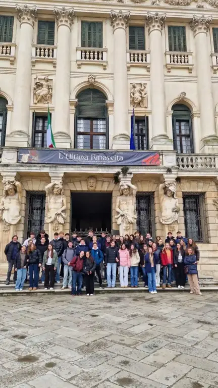 Am 5.2.26 (Donnerstag) ging es um 6. 45 Uhr an den St. Raphael-Schulen mit Frau Bieser los. Wir trafen uns noch im Dunkeln mit unserem Gepäck und guter Laune am Bus, um alle gemeinsam nach Italien zu fahren. Die Stimmung im Bus was von Anfang an sehr gut, wir waren aufgeregt, gespannt auf unsere Gastfamilien und redeten viel, spielten Spiele und hörten Musik. Gegen 18.30 Uhr kamen wir in Padua im Veneto planmäßig an. Am Liceo Curiel warteten unsere Gastfamilie auf uns und wir fanden uns sehr schnell zusammen, da wir zuvor alle bereits Mailkontakt hatten.