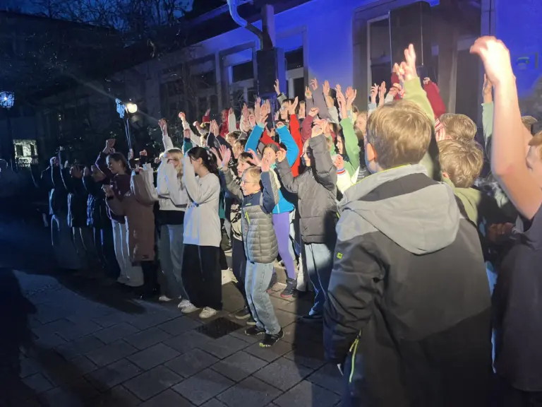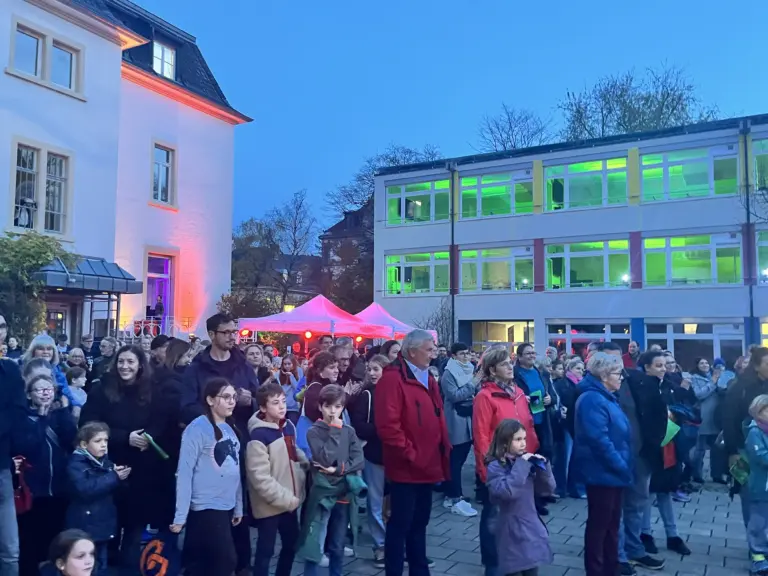 Es war ein wundervolles Novemberleuchten: Die Sonne strahlte anfangs, in der Dämmerung und Dunkelheit die Lichter. Es strahlten die Augen der Grund- und Realschülerinnen und -schüler, die gespürt haben, was durch Zusammenarbeit von Eltern, Lehrkräften und Schülerinnen und Schülern alles möglich ist. Zusammenarbeit, damit andere strahlen können, das ist die Realschule der St. Raphael-Schulen.