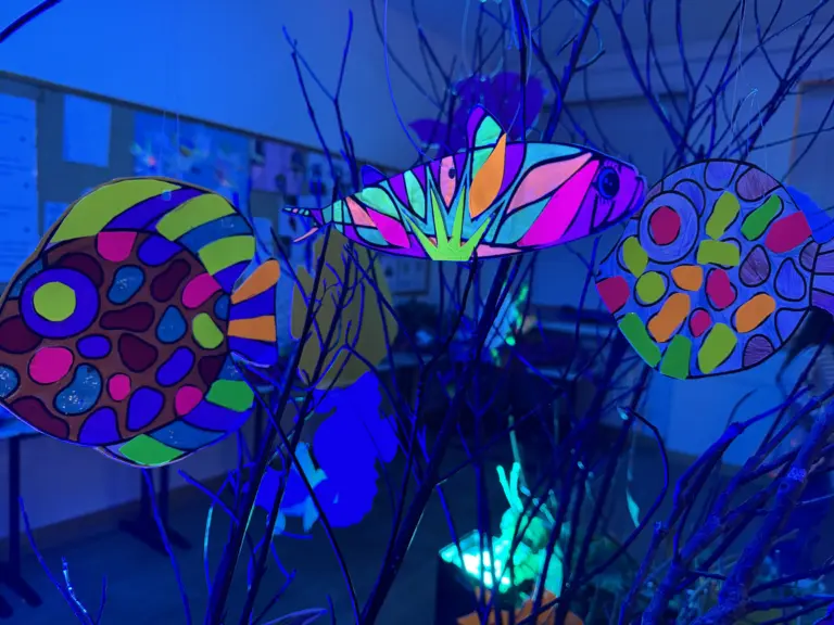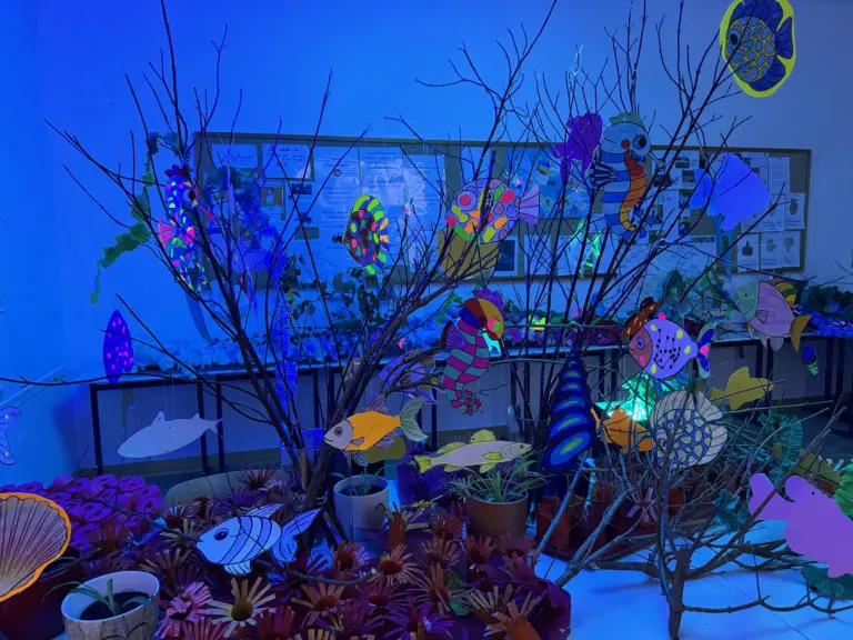 Ein Blickfang war auch die Zeichnung auf dem Plakat, welches von Fenja Gebhart (8aR) angefertigt wurde. Ein großer Dank geht an die Technik-AG von Manuel Martin, die neben den Mikrofonen und dem Keyboard auch viele Klassenzimmer zum Leuchten brachten und ein wundervolles Ambiente schufen. Weiterhin geht der Dank an die Eltern, die leckere, deftige und süße Speisen kochten und backten. Die Elternvertreterin der Realschule Alena Beyer hat diese Zusammenarbeit wunderbar organisiert. Freuen kann sich auch der Inklusive Kindergarten Regenbogen in Mannheim. Dorthin geht dieses Jahr die Spende aus dem Verkauf des Standes des Elternbeirats.