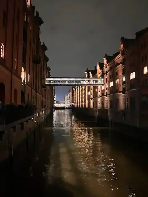 diejenigen, die wollten, noch einmal durch die schöne beleuchtete Speicherstadt spazieren. Von den Terrassen der Elbphilharmonie hatten wir einen fantastischen Ausblick auf das nächtliche Hamburg.